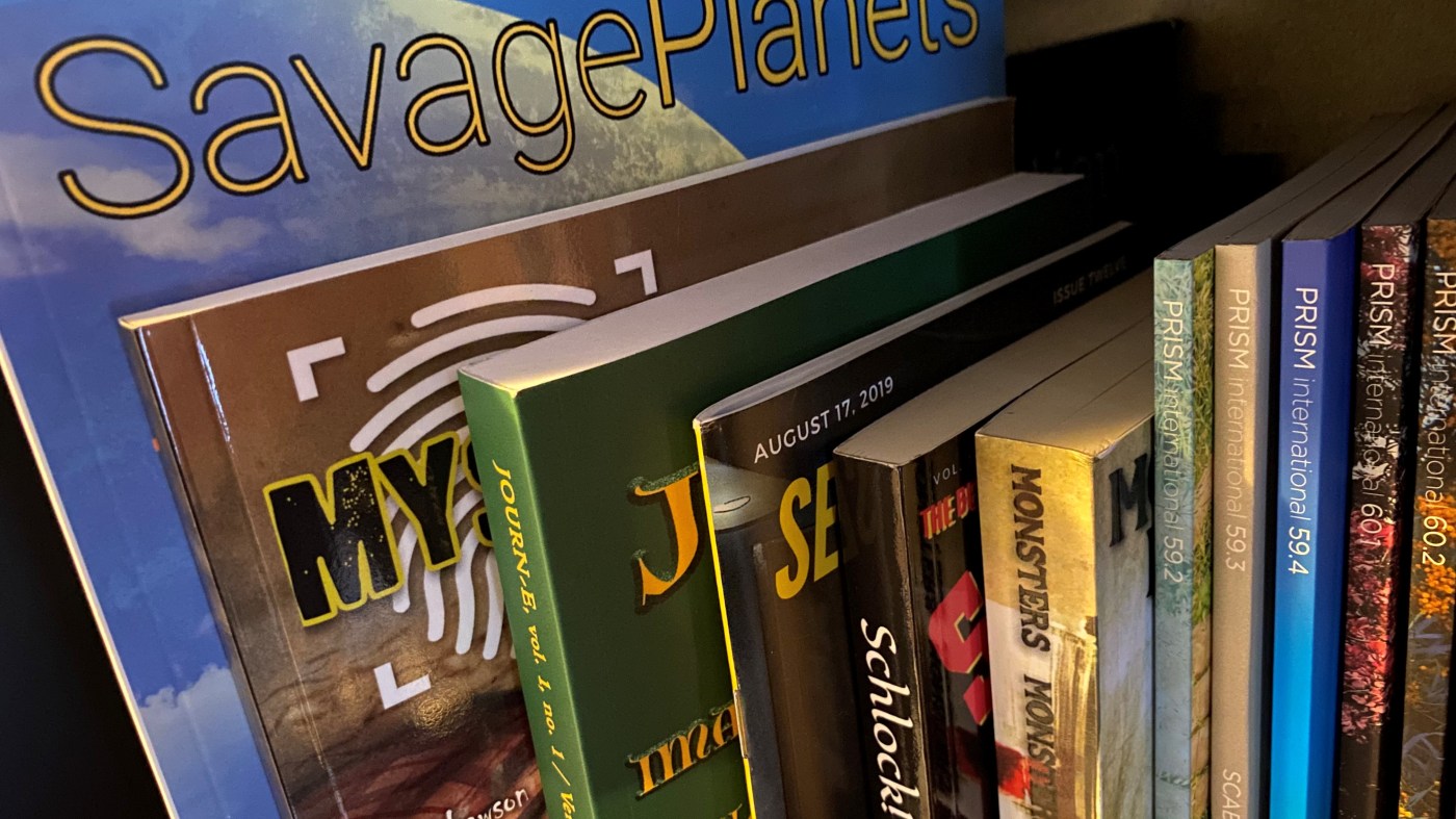 Keeping up the momentum to make more breadcrumbs, I cranked out short story after short story. Some were picked up by journals or anthologies that went to print. As they trickled in, I carved out a corner of my bookshelf for them.